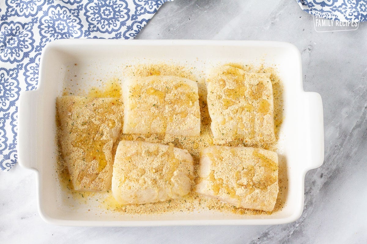 - Season the Fish: Sprinkle each fillet with seasoned breadcrumbs then add any remaining melted butter over the top. This will help bake all that buttery flavor into the fish.