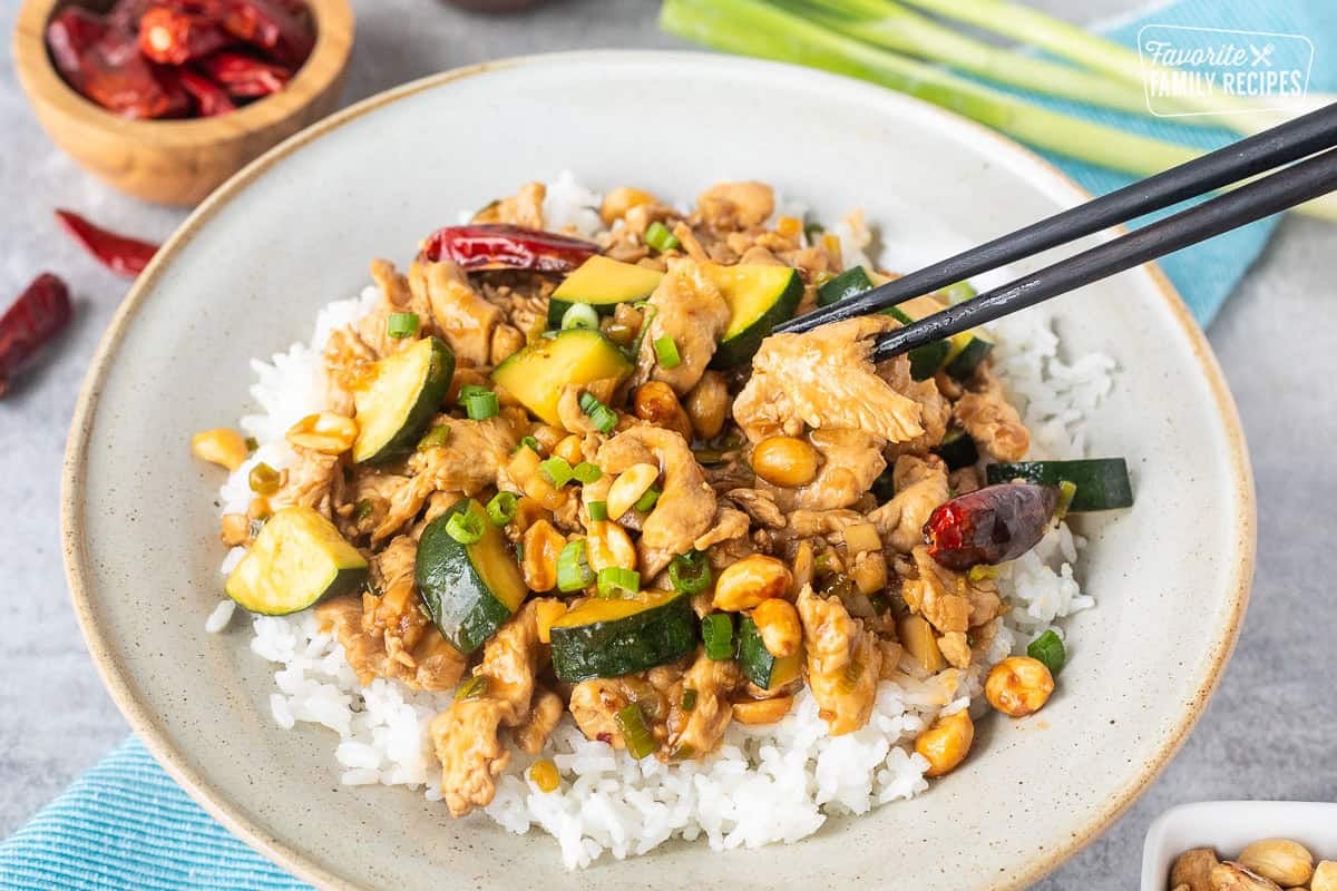 One thing I love about Chinese food is that is re-heats great. Store any leftover Kung Pao chicken in an airtight container in the refrigerator for up to 3-4 days. When reheating, warm it in a skillet over medium heat for the best texture, adding a splash of chicken broth or water to loosen the sauce and keep everything from drying out. You can also microwave it in short intervals, stirring in between, but the stovetop method helps the chicken stay tender and the sauce nice and glossy.
